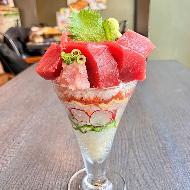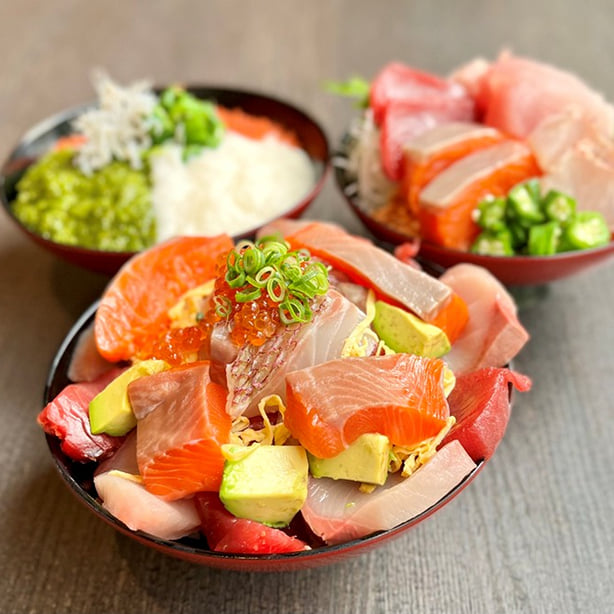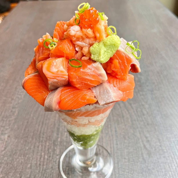 “海のゴチソウ”を自由に盛りつけよう!マグロ、サーモン、イクラ、タイ、赤エビ、カキ、ネギトロ——。人気のカラフルな寿司パフェや、選べる器で盛り付けも自由自在。自分だけの“ゴチソウ丼”を作って、家族や友だちと、みんなでワイワイ楽しもう!