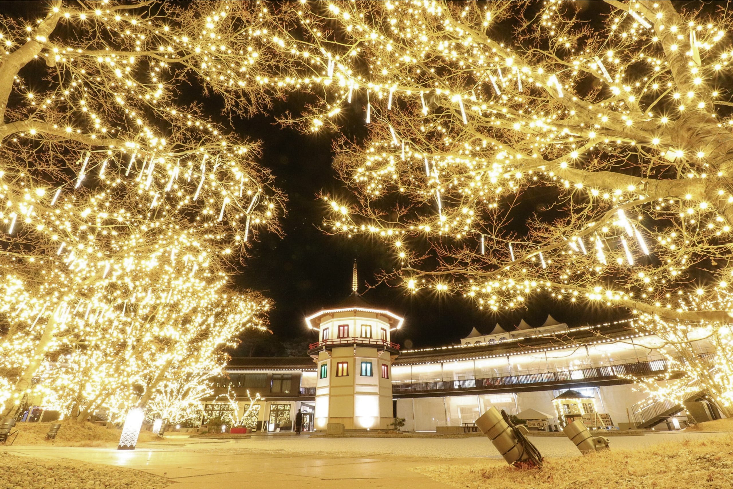 一般社団法人照明学会から照明普及賞を受賞。上品なシャンパンゴールドの光と、華やかな7色の光が切り替わる特別な演出をお楽しみいただけます。16万球の光が一斉に灯る圧巻の瞬間をご覧ください。