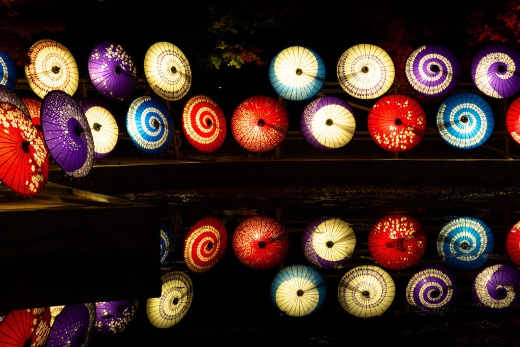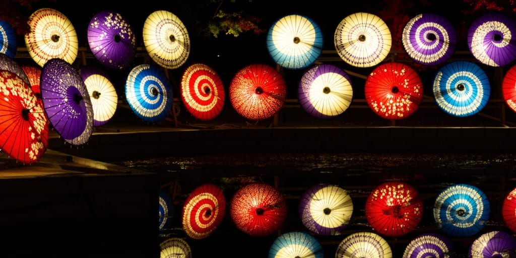 12月は青を基調にした”冬のきらめき”を纏う「和傘のライトアップ」