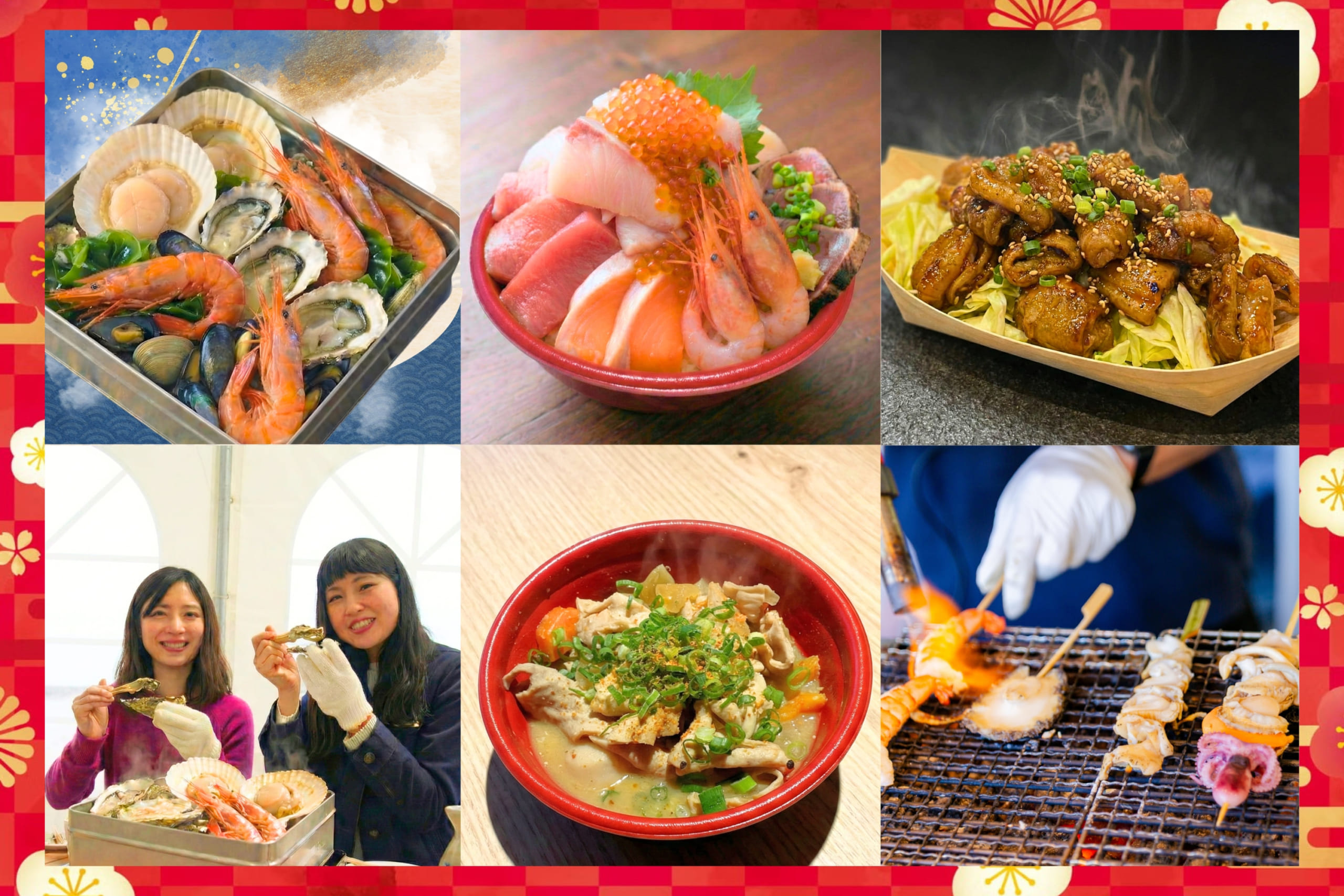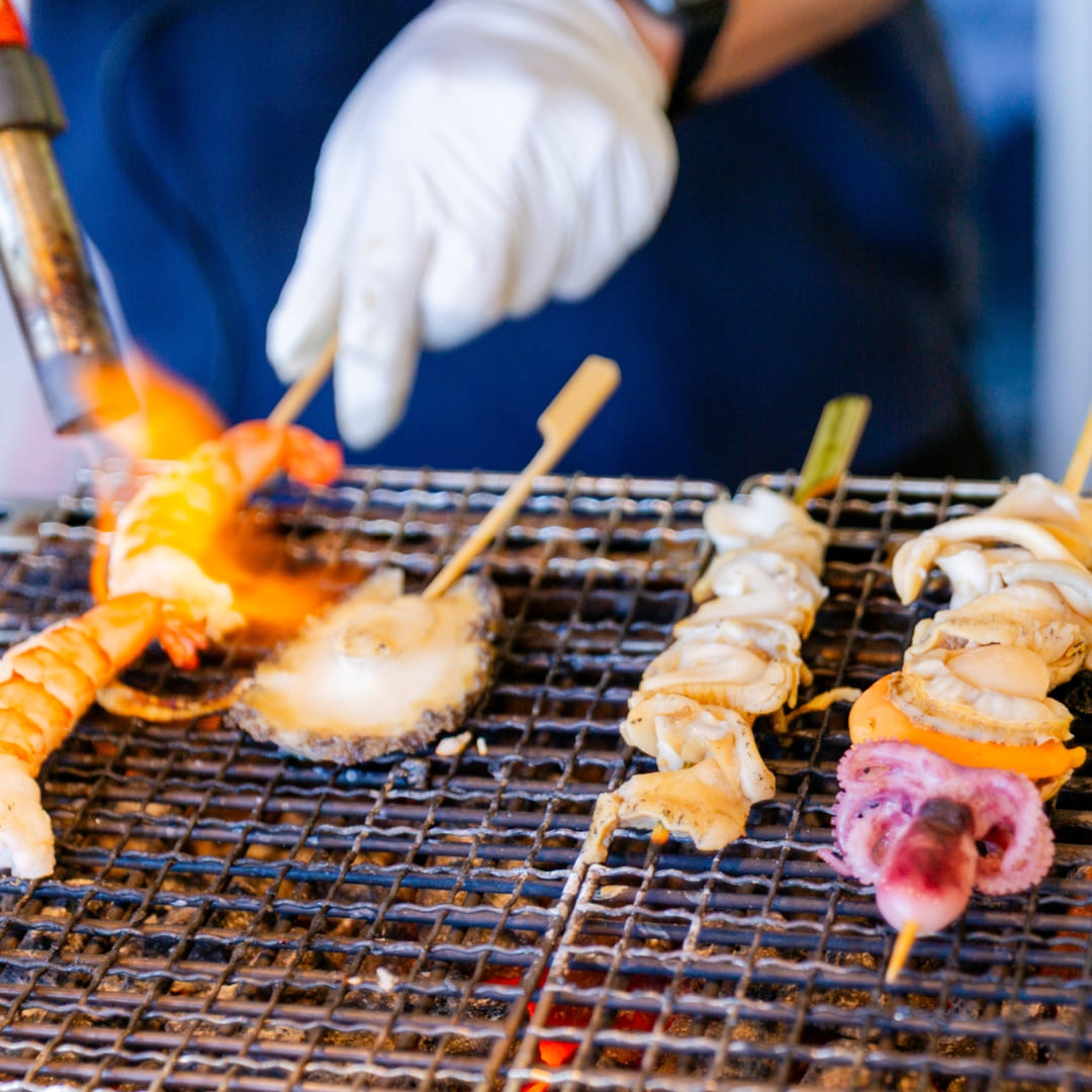 さらに、厚切り刺身を好きなだけ盛れる「のっけ放題海鮮丼」や、銘柄豚「JAPAN X」の特製モツ煮、海鮮串焼きなど、日本酒に合うグルメも充実。宮城の贅沢な味覚を心ゆくまでお楽しみください。